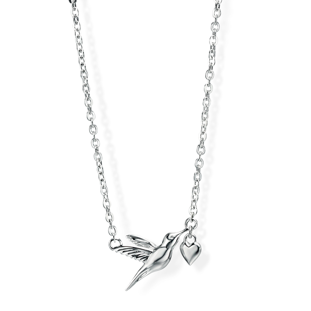 Hummingbird Kiss Heart Sterling Silver Necklace