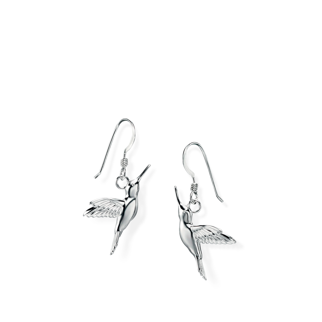 Hummingbird Kiss Heart Sterling Silver Drop Earrings
